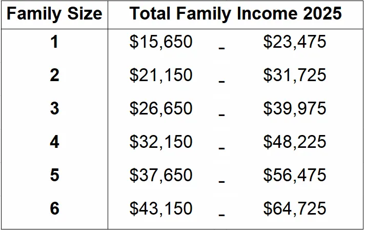 You agree that your income estimation would fall in the range below based on your tax household size.